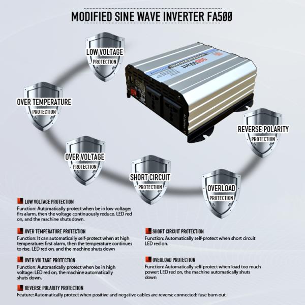 This power inverter is modified sine wave inverter which converts DC power to AC power.
